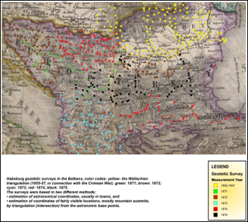 Në territorin e Shqipërisë, matjet e para gjeodezike që lidhen me ndërtimin e sistemin të referencës koordinative janë matjet e kryera nga Perandoria Austro-Hungareze gjatë viteve 1853-1875 në të gjithë territorin e Gadishullit Ballkanik, i cili në atë kohë ishte nën sundimin e Perandorisë Osmane. Punimet gjeodezike janë kryer në kuadër të matjes ndërkombëtare të Habsburgëve “International Arc Measurements-International Grodmessung” me qëllim ndërtimin e një bazë gjeodezike të përshtatshme për hartëzimin e territorit në shkallën 1:75 000 dhe 1: 200 000. Gjatë viteve 1871-I875, ekipet gjeodezike austriake të cilave u janë bashkuar ekipet osmane janë angazhuar me matje gjeodezike të kryera në territoret aktuale të Bosnjë-Hercegovinës, Serbisë, Kosovës, Rumanisë, Malit të Zi, Shqipërisë, Maqedonisë, Bullgarisë dhe Greqisë. Si rezultat i këtyre matjeve, territori i Ballkanit u mbulua me pika gjeodezike në form trekendëshi.